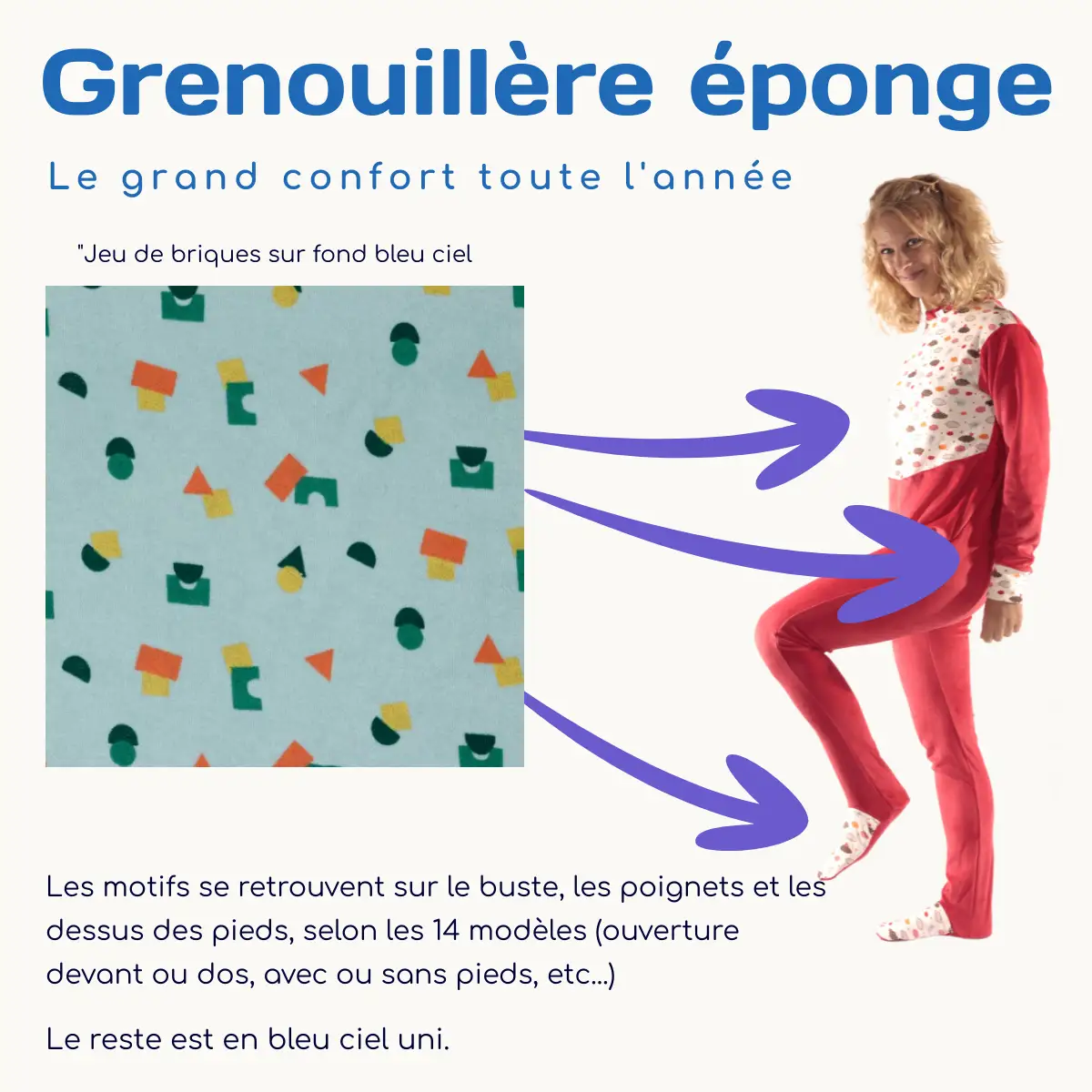 Une grenouillère éponge femme/homme adaptée au port de couches, avec ses 14 styles